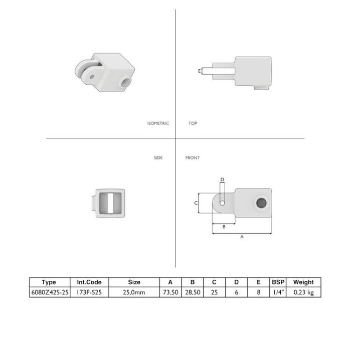 Female Single Socket. Often used together with other brackets, such as Type 36, 38, and 40. One part of swivel fitting, not generally used alone.